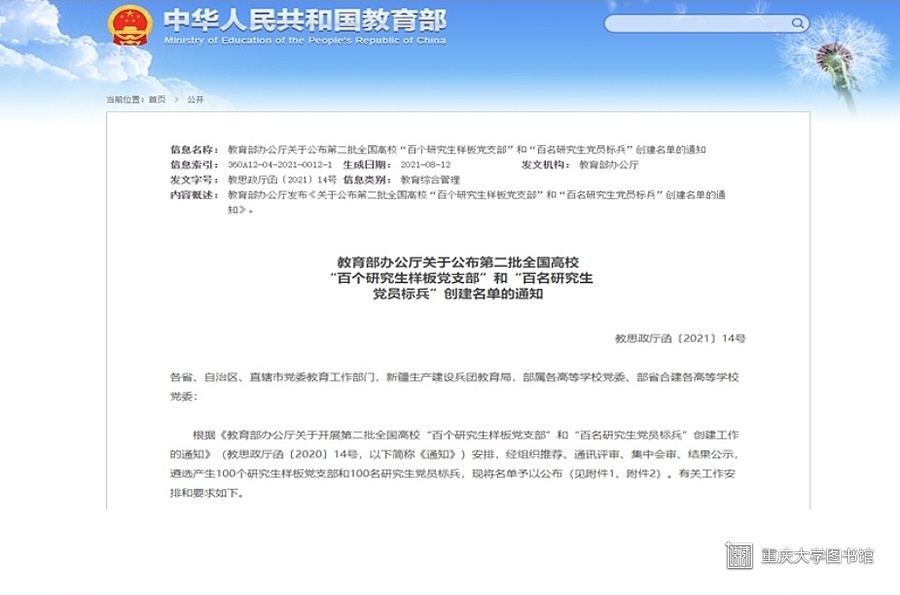 学校入选教育部第二批全国高校“百个研究生样板党支部”和 “百名研究生党员标兵”创建名单-2