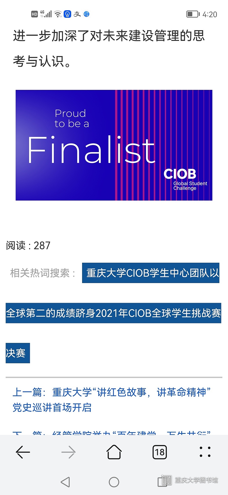 重庆大学学生团队获2021年CIOB全球学生挑战赛初赛全球第二并晋级决赛-1