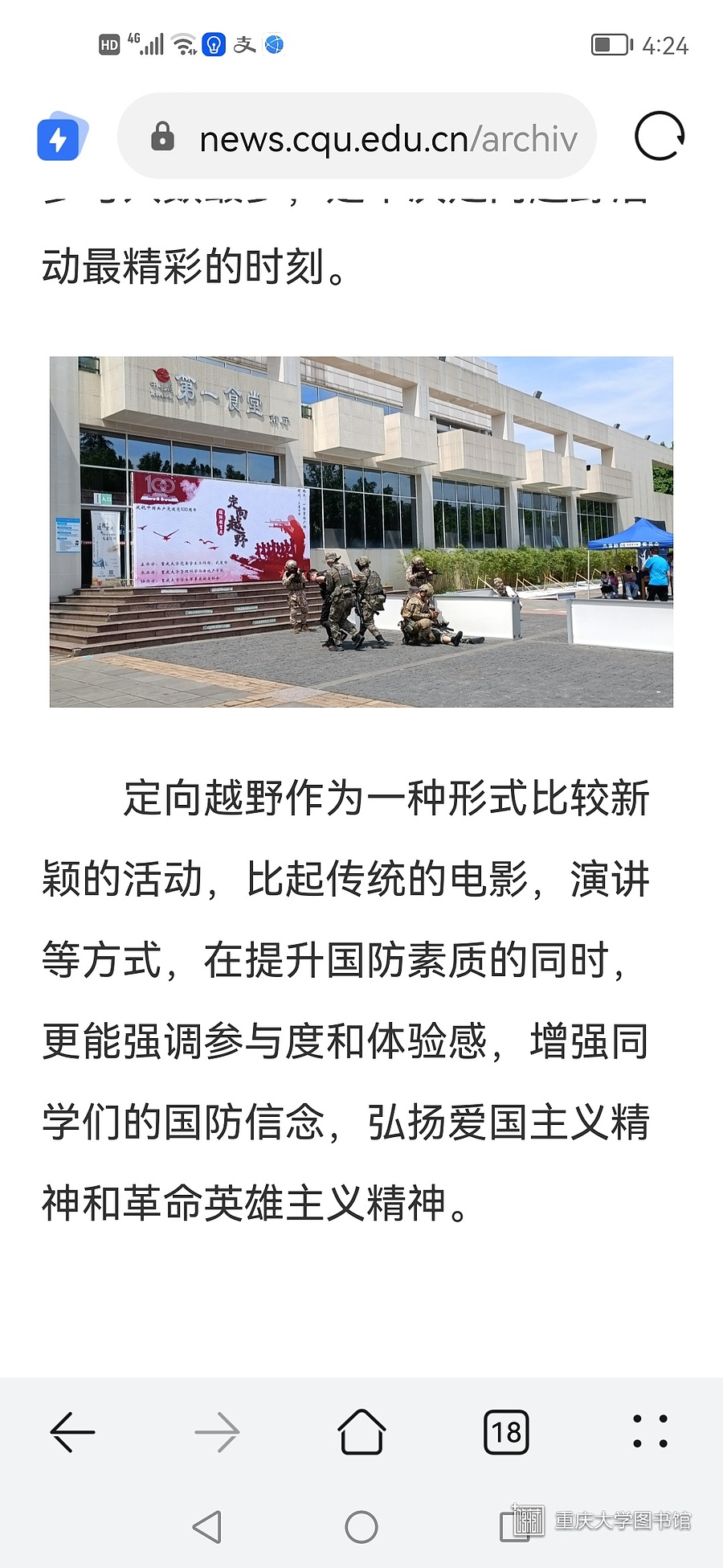 为庆祝中国共产党成立100周年,由重庆大学党委学生工作部、武装部主办,管理科学与房地产学院承办,军事爱好者协会协办的国防教育月定向越野活动于5月9日在虎溪校区举行。