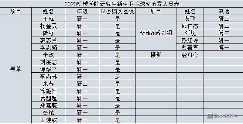 2020年9月13日下午在A区羽毛球馆,机械工程学院研究生新生羽毛球交流赛如火如荼地进行着。本次比赛由机械工程学院研究生羽毛球队组织并承办。比赛旨在丰富新生课余生活,增进新老生交流,弘扬体育精神。由于今年学院女生新生较少,比赛项目只设置了男单和交流项目,15名20级新生报名参加了比赛,另外还有四名裁判和两名服务人员。