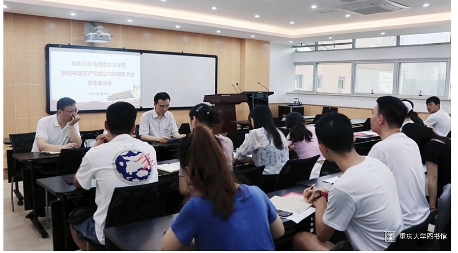 为深入学习落实习近平总书记“七一”讲话精神,2021年7月1日10时,马克思主义学院召开“庆祝中国共产党一百周年”座谈会,座谈会分为学生会场和老师会场,马克思主义学院党委书记罗滌、院长张邦辉、党委副书记温健琳、副院长徐鲲、吕进,部分教师、学生党员参加座谈。