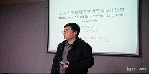 2018年11月29日下午3点半,以“以人为本的建筑物理环境设计研究”为主题的讲座在重庆大学建筑城规学院建筑技术会议室5117举办。此次讲座的主讲嘉宾是澳大利亚格里菲斯大学建筑学高级讲师苟中华博士,主持人是重庆大学建筑城规学院张海滨副教授,对谈嘉宾是重庆大学建筑城规学院唐鸣放教授和杨真静副教授。