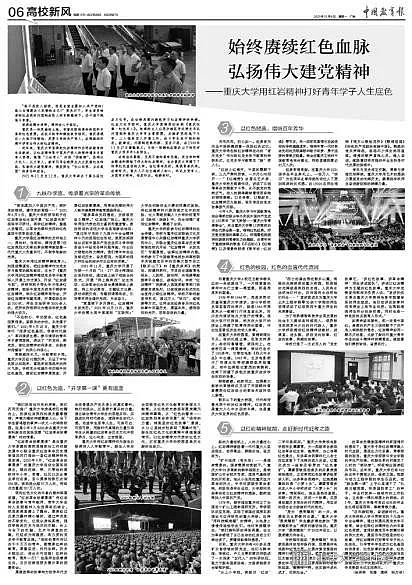 2021年12月6日的《中国教育报》以整版篇幅刊发《始终赓续红色血脉,弘扬伟大建党精神》一文,聚焦重庆大学赓续红色血脉,传承伟大建党精神。
