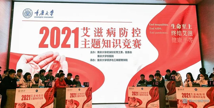 2021年12月1日是第34个“世界艾滋病日”,为宣传和普及预防艾滋病的知识,进一步加强校内艾滋病防控工作,重庆大学开展了以“生命至上、终结艾滋、健康平等”为主题的第八届艾滋病防控主题知识竞赛,提高师生们对艾滋病的认识和重视,帮助克服盲目恐惧。