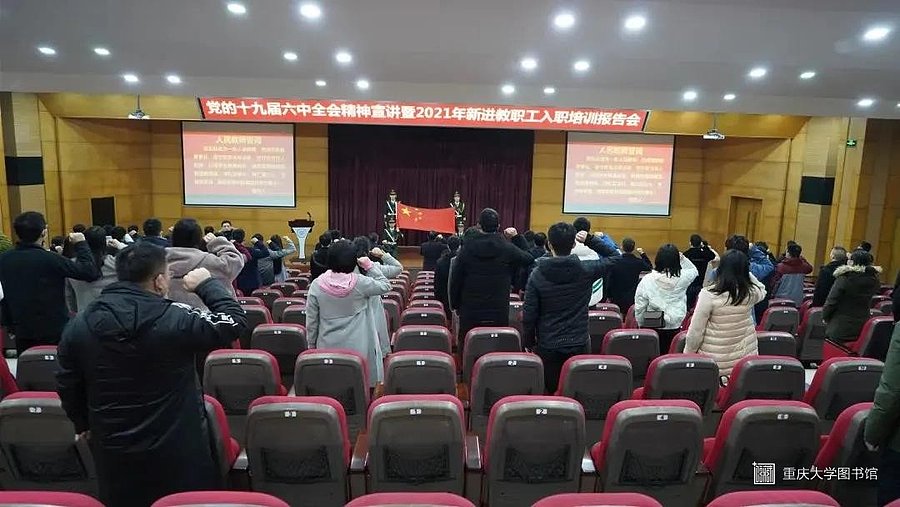 重庆大学举行党的十九届六中全会精神宣讲暨重庆大学2021年新进教职工入职培训报告会-1