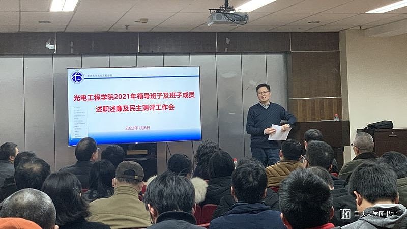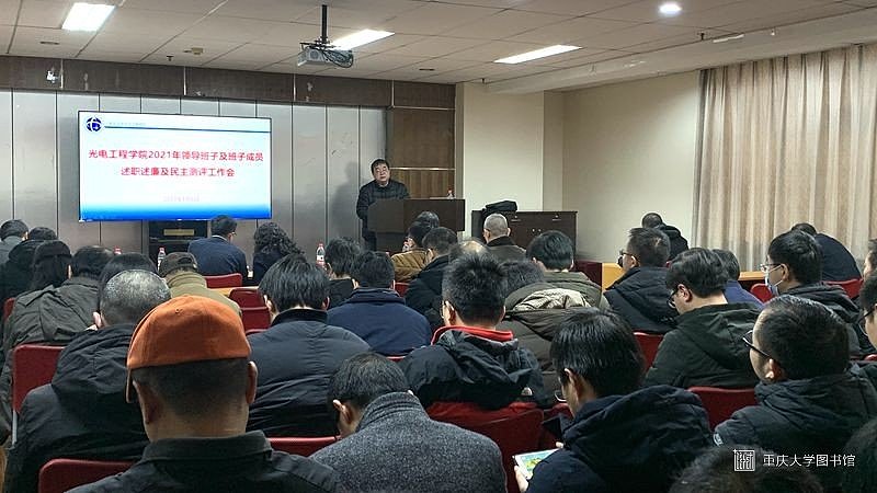 2022年1月6日下午,光电工程学院2021年领导班子和领导人员述职暨民主测评会在主教学楼1201会议室召开。校党委常务副书记王时龙,学校考核组成员、党委宣传部副部长徐方正、校保密委员会办公室正科级保密员刘东堃以及光电工程学院全体教职工参加会议。会议由院党委书记秦岚主持。