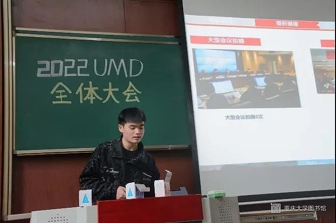 策划部部长向钧对本学期撰写的推文、 “赓续”摄影大赛与防疫宣传活动、重大街拍与重大集市等特色栏目做了总结和回顾,并对各项活动的成功之处和存在的问题做了深入的剖析。在最后,他代表策划部感谢UMD各个部门的通力配合,同时希望策划部新的一年能够继续努力,并对2022年策划部工作有所期待。