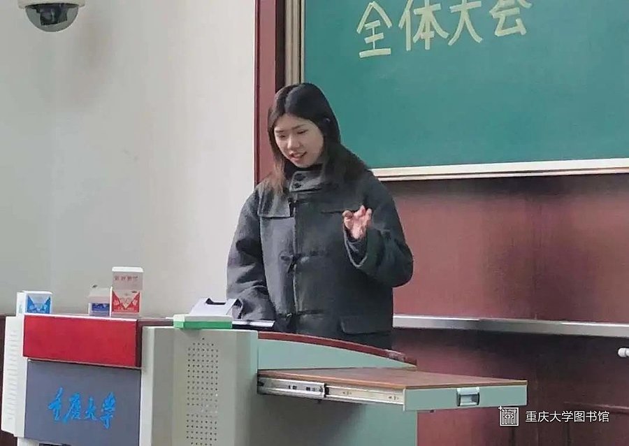 编辑部部长费安绮总结了编辑部半年来的推文推送情况。编辑部的推文在本学期共获8次“流量之星”称号,同时设计的重庆大学定制棒棒糖、明信片、月历和PPT等文创作品也深受老师和同学们的喜爱。她肯定了编辑部半年来的工作成果,也分析了在工作中存在的问题和不足之处。最后她也给大家分享了推文写作的经验,并对寒假及下一学期的工作做出了安排。