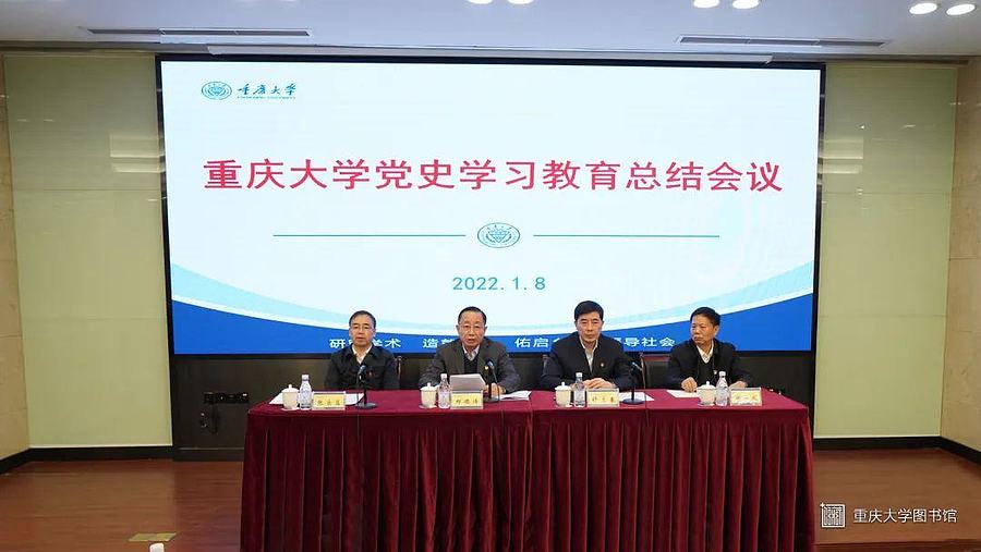 2022年1月8日,重庆大学党史学习教育总结会议在主教学楼504会议室召开。中管高校党史学习教育第十一指导组组长郑德涛、副组长谢守成,成员黄玉新、张卫平列席并予以指导。校长张宗益主持会议。