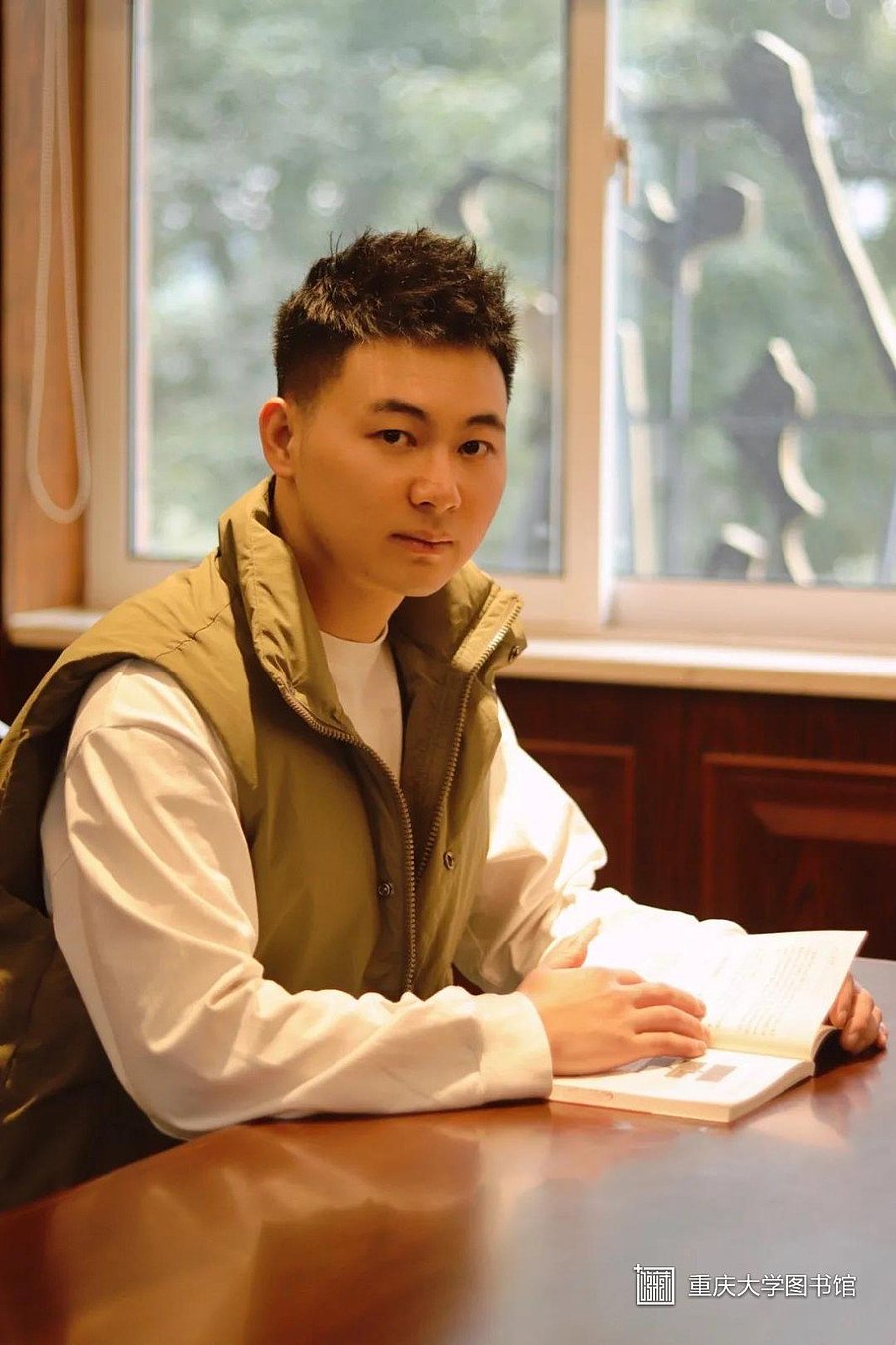 卡其色马甲搭白色长袖