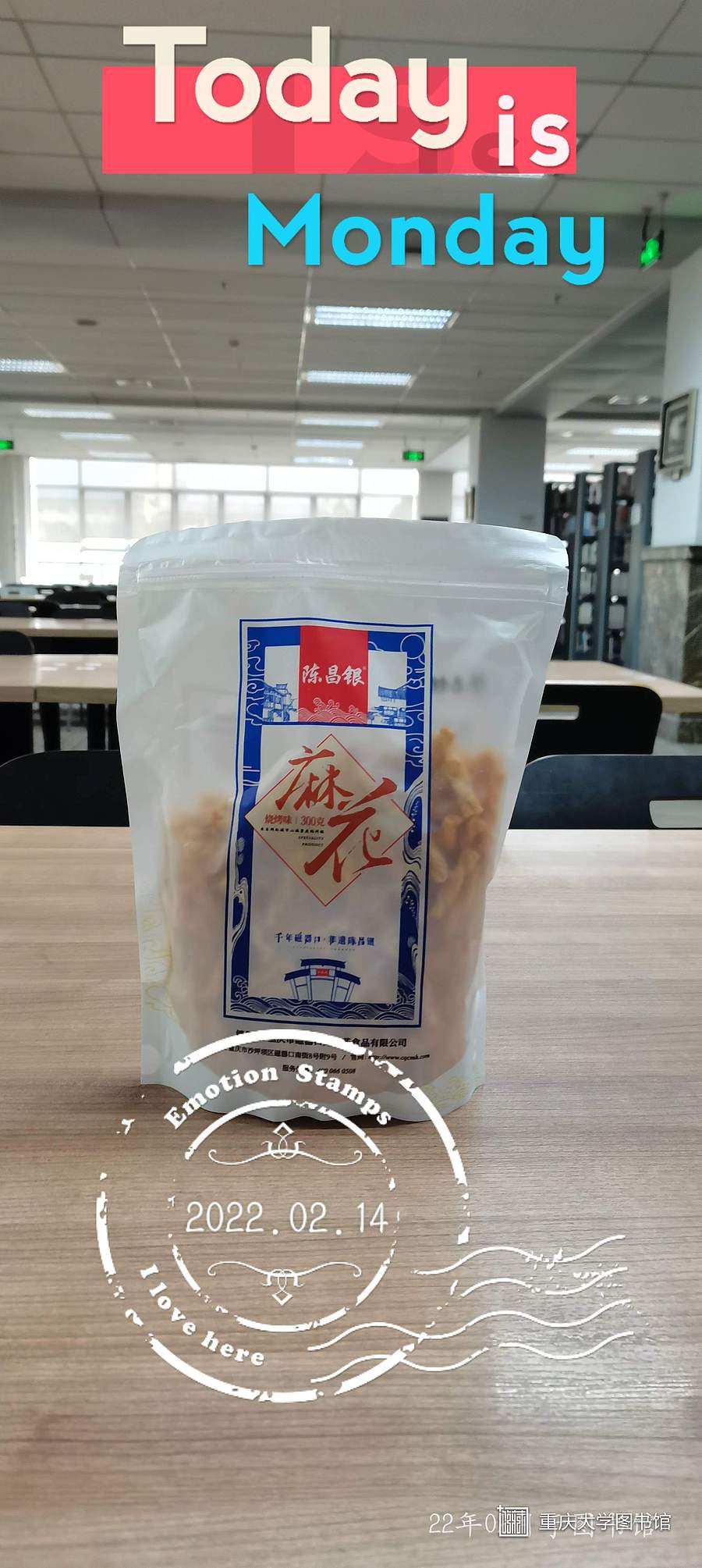 这是元宵节图书馆为我们准备的小礼物呀,感谢图书馆为我们提供这么好的学习环境、那么多的书籍资料,我会一直记住的