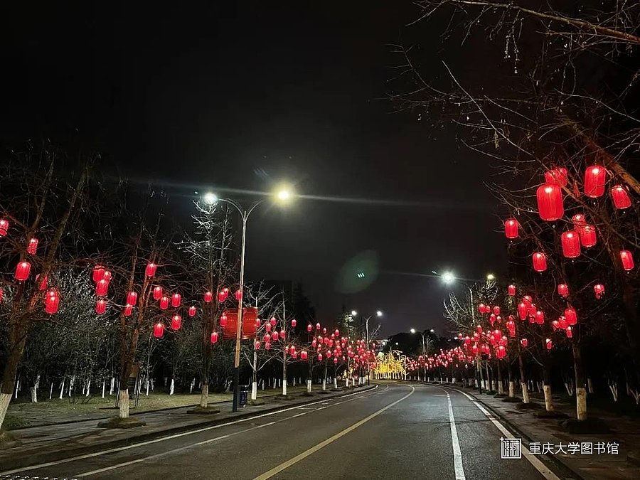 校园还新增了一些灯饰,“大红灯笼高高挂”,整个校园洋溢着新春喜庆热闹的氛围。到了夜幕降临时,整个校园更是灯的海洋:是洒落人间五颜六色的焰火,是奔流不息、闪光夺目的长河。