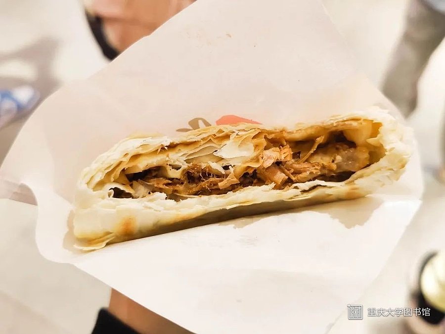 肉夹馍的表皮烤得金黄焦香