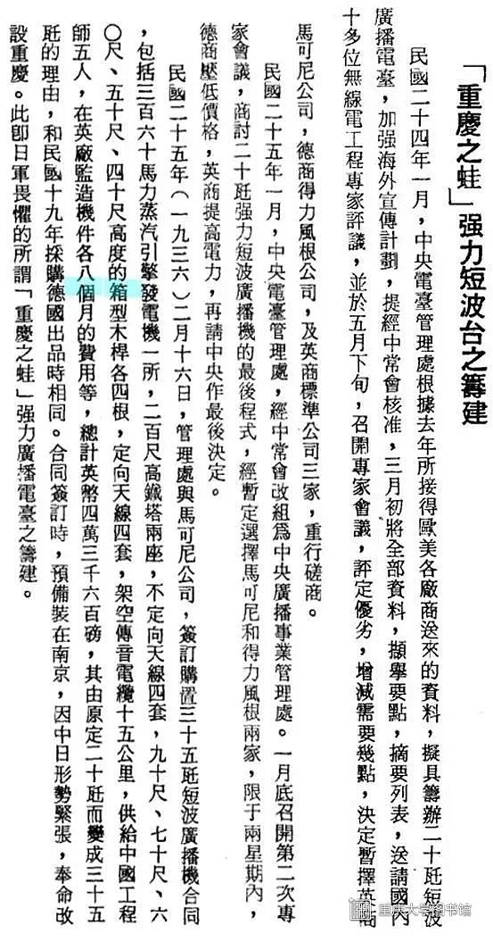 炸不死的“重庆之蛙”这一称号其实来自日本人的一篇报道。当年的东京报纸这样写道:“我皇军飞机大轰炸重庆,那里的青蛙全都炸死无声,为什么那个扰人心绪的电台还是叫个不停?”于是这个“叫个不停”的电台就有了“重庆之蛙”的别称。