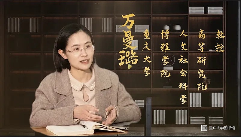 人物简介:万曼璐,文学博士,重庆大学人文社会科学高等研究院/博雅学院教授,硕士生导师。中央电视台“百家讲坛”主讲人。研究领域涉及汉语言文字学、文献学等。曾获“第四届全国高校青年教师教学竞赛二等奖”“重庆市五一劳动奖章”。在央视《百家讲坛》主讲“千古家书”“古人怎么说话”等系列节目。